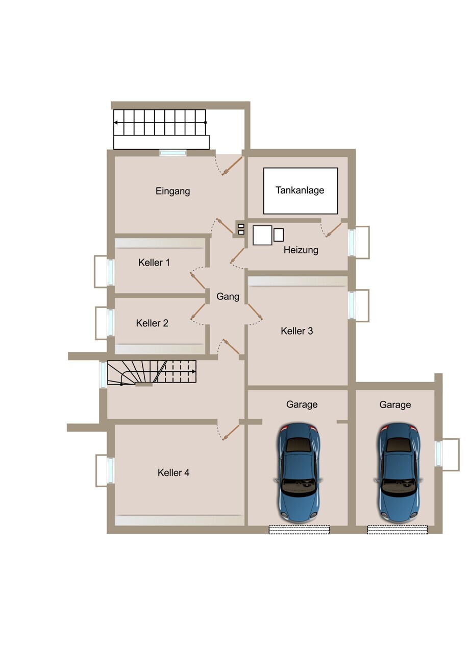 Zum Objekt gehören zwei Garagenstellplätze sowie zwei weitere Außenstellplätze, die den Bewohnern komfortable Parkmöglichkeiten bieten.