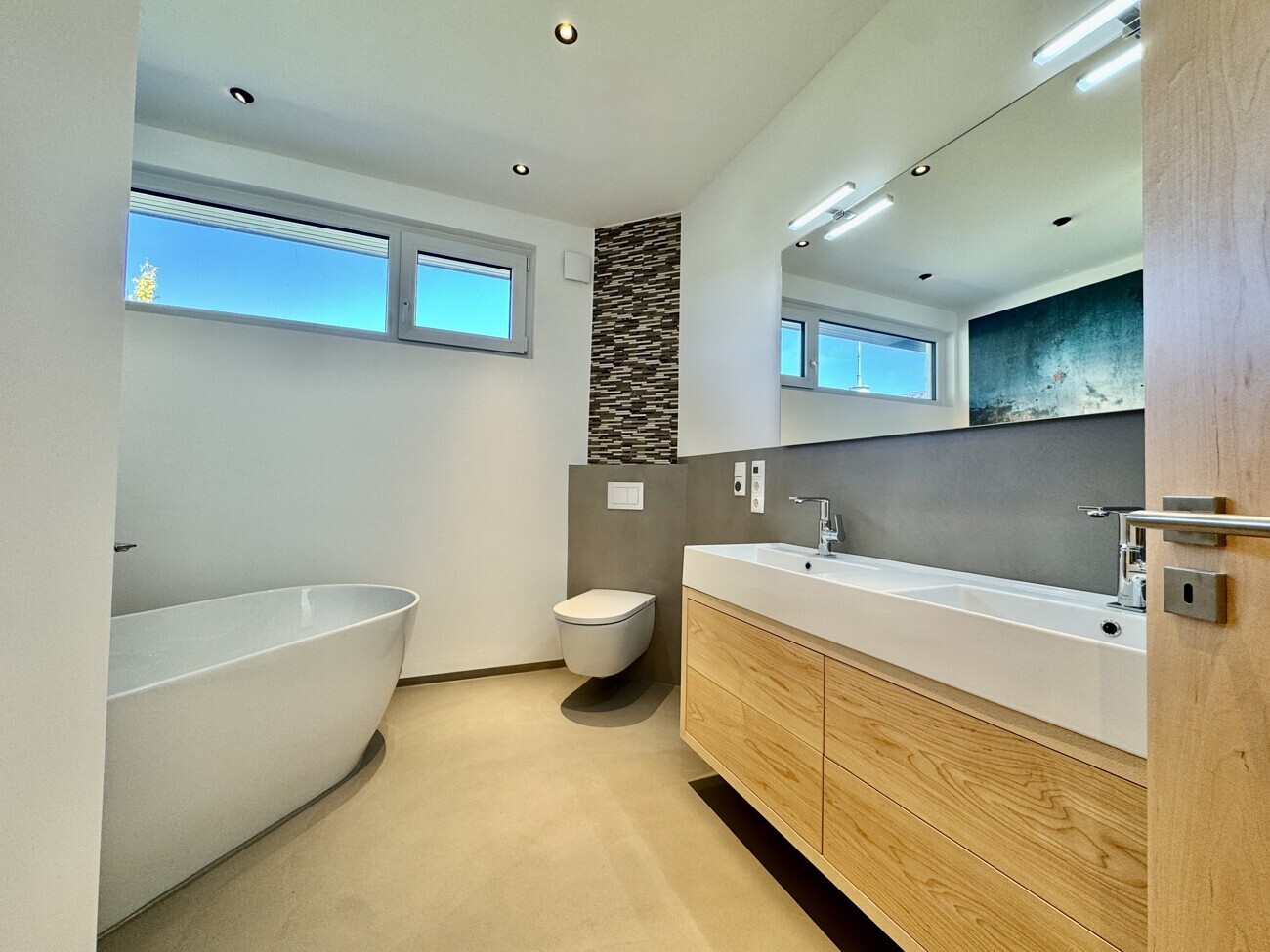 - Handgefertigte Massivholztüren aus Ahorn – besonders langlebig und ein echtes Highlight im Innenraum