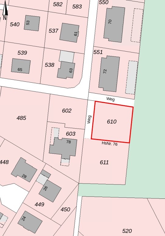 Das Grundstück liegt in einem allgemeinen Wohngebiet (WA) und verfügt über eine Fläche von ca. 605 m². Es eignet sich ideal für die Bebauung mit einem Einfamilienhaus. Die Grundflächenzahl (GRZ) beträgt 0,3, sodass grundsätzlich eine großzügige und zeitgemäße Wohnbebauung möglich ist.