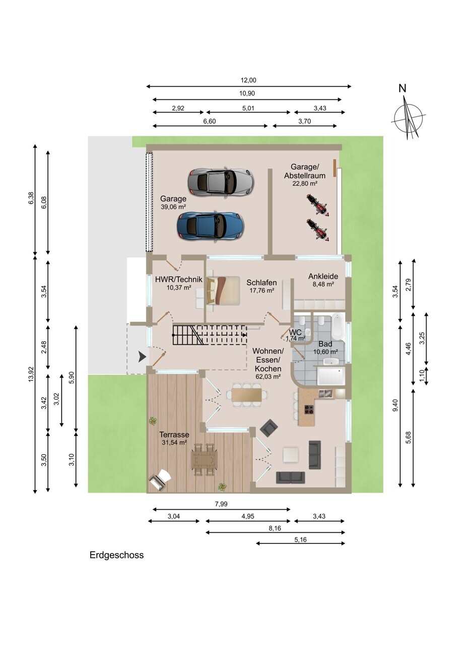 - Option zur Erweiterung: Zusätzlich besteht die Möglichkeit, die Dachterrasse aufzustocken und so weiteren Wohnraum zu schaffen – perfekt, um Ihre Wohnträume langfristig zu verwirklichen