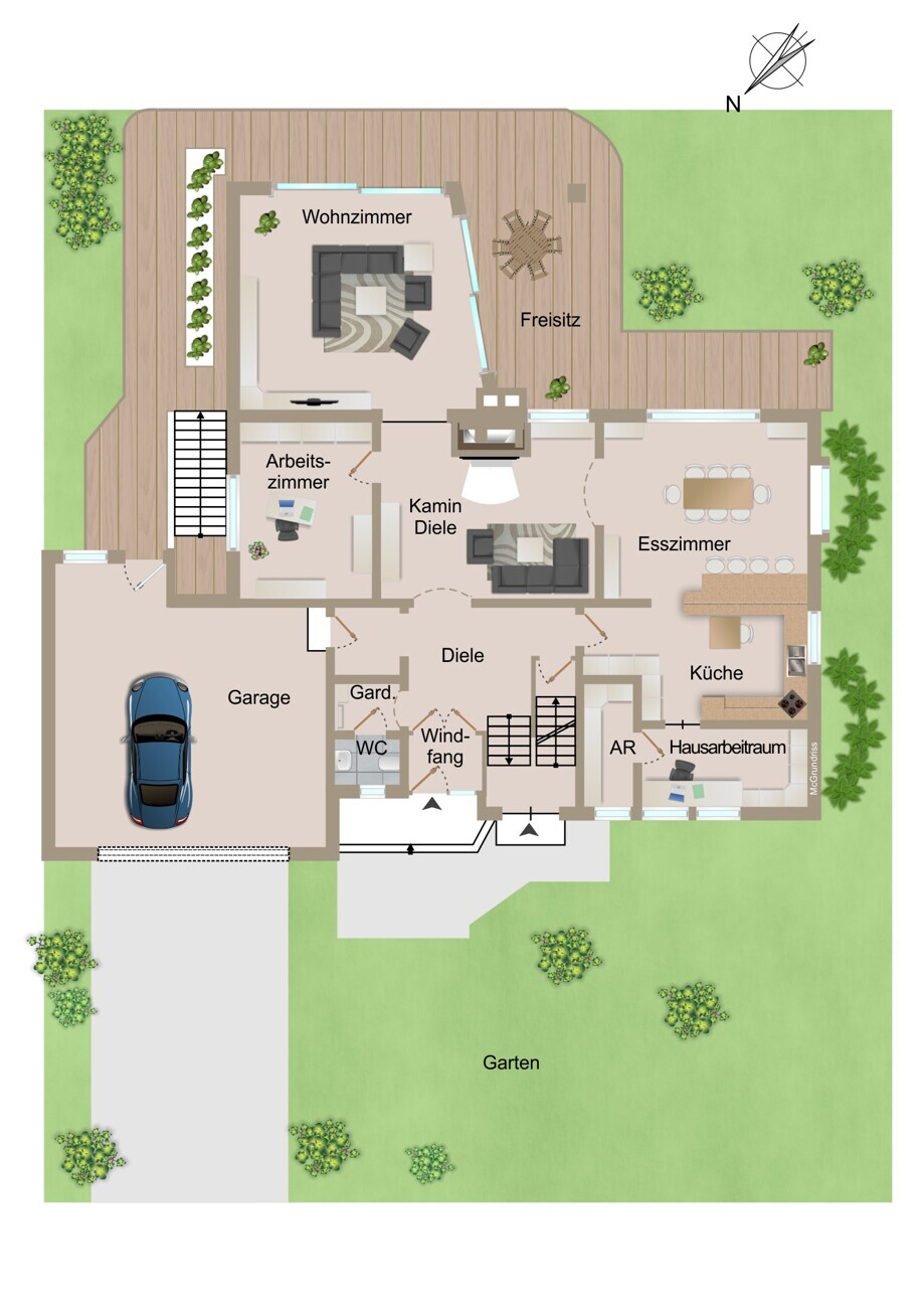 - Doppelgarage (47 m²) mit direktem Zugang zum Haus