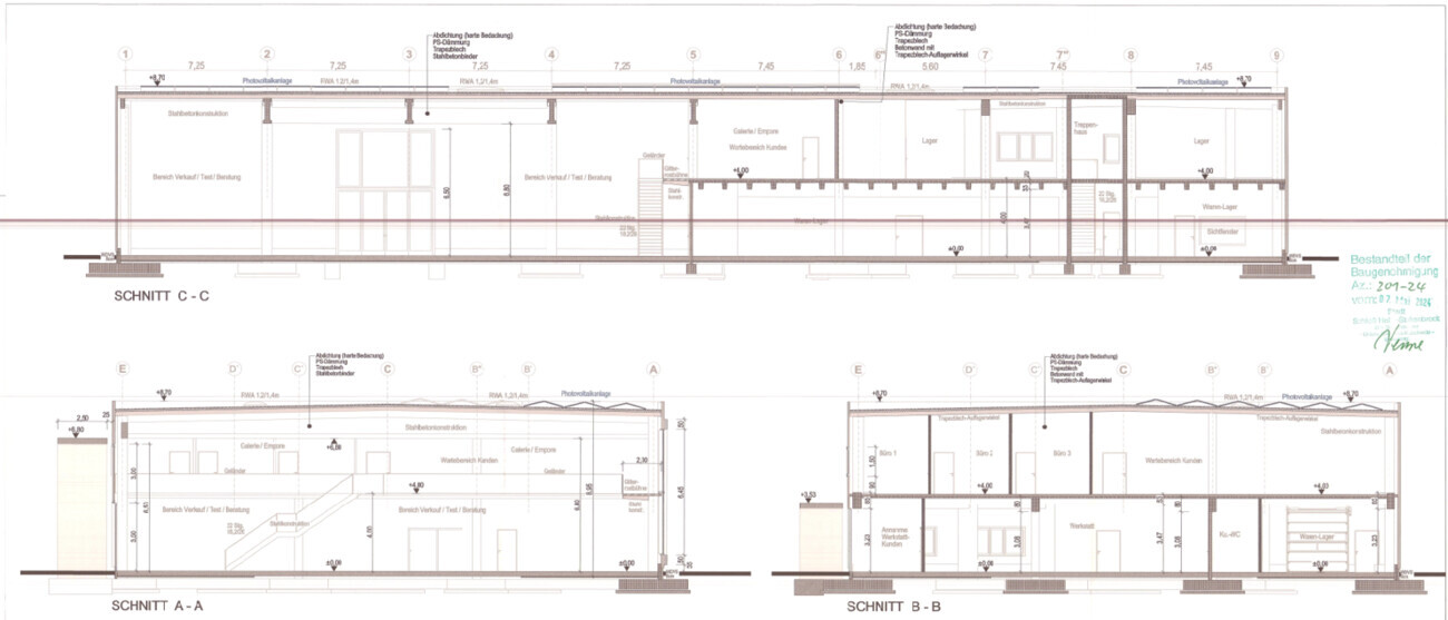 - 4 Lichtkuppeln (RWAs, ca. 120x240 mit integrierten RWA-Öffnungen