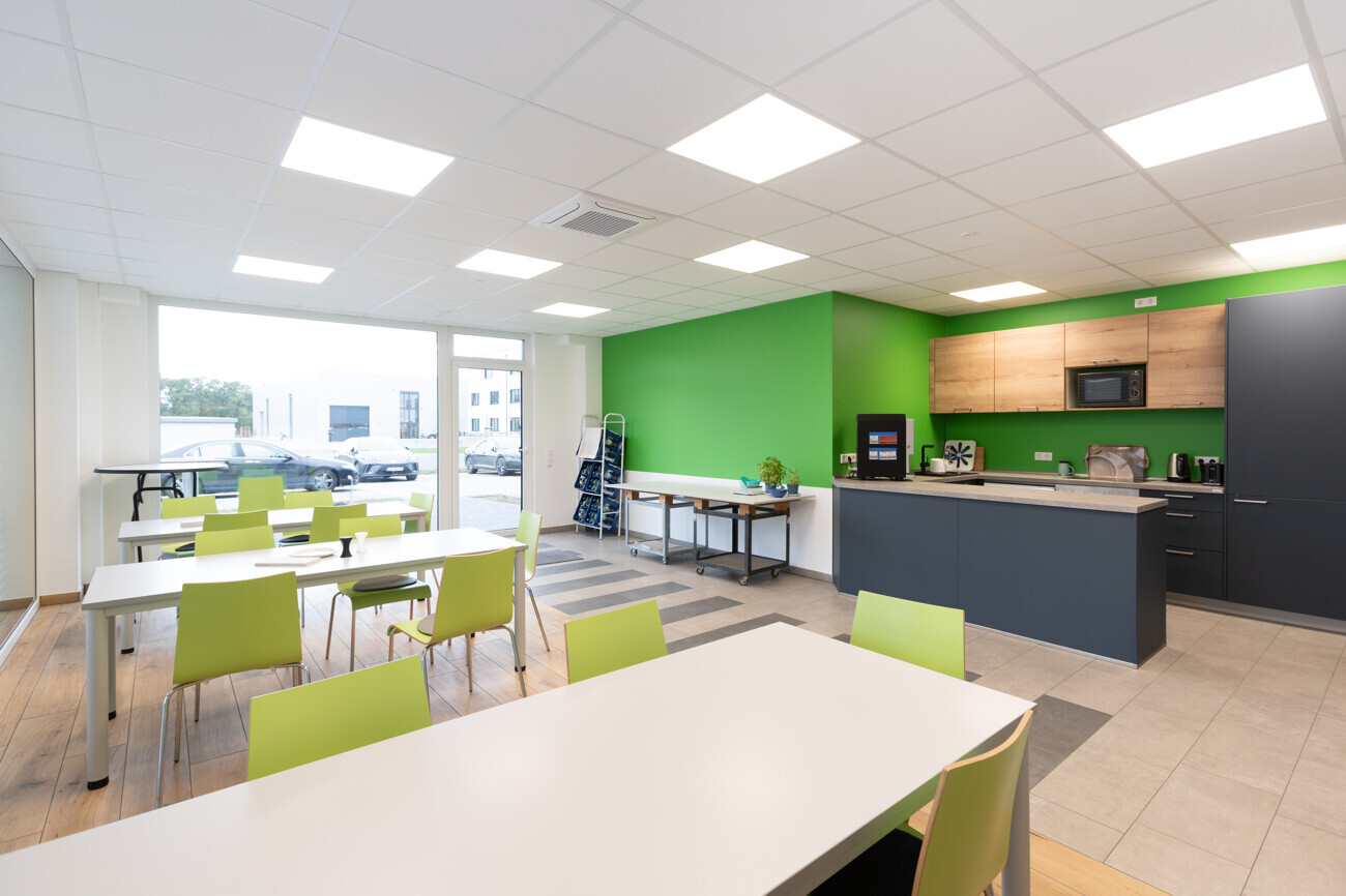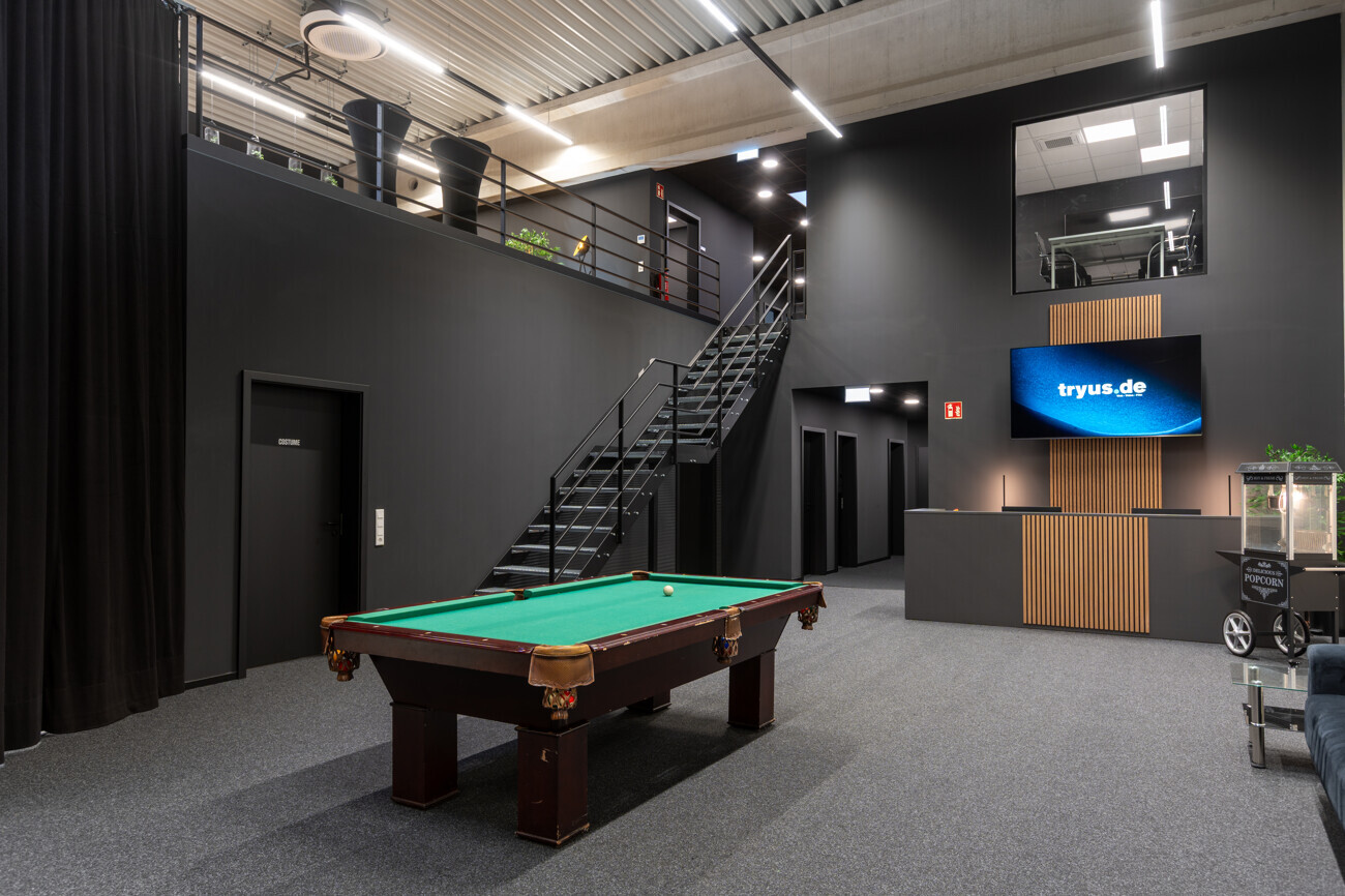 Auf der vorderen Fläche ist ein Unternehmen aus dem Bereich Automatisierungs- und Fertigungstechnik ansässig, das moderne Produktions- und Entwicklungsprozesse abbildet. Im hinteren Gebäudeteil befindet sich eine innovative Marketingagentur, die die Flächen für kreative Arbeitsprozesse sowie für Foto- und Filmproduktionen nutzt.