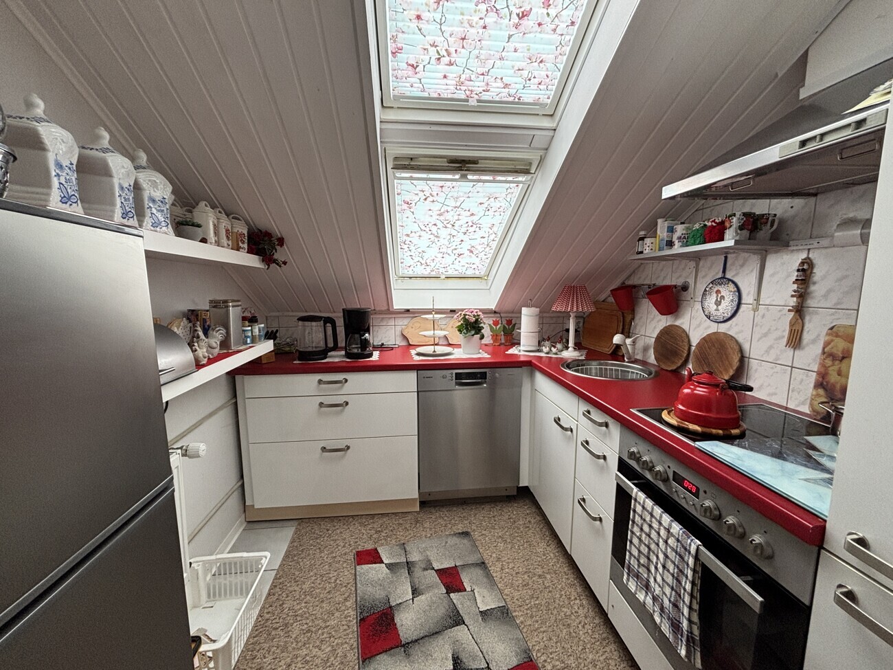 Die Wohnung im Obergeschoss verfügt über ca. 82,6 m² Wohnfläche und ist derzeit vermietet. Sie erzielt eine monatliche Kaltmiete von 600 € inklusive einer Garage. Diese Einheit umfasst ein Schlafzimmer, ein Wohnzimmer, eine Küche, ein Badezimmer sowie ein weiteres kleines Wohnzimmer. Ein Balkon mit schöner Aussicht rundet das Angebot ab.