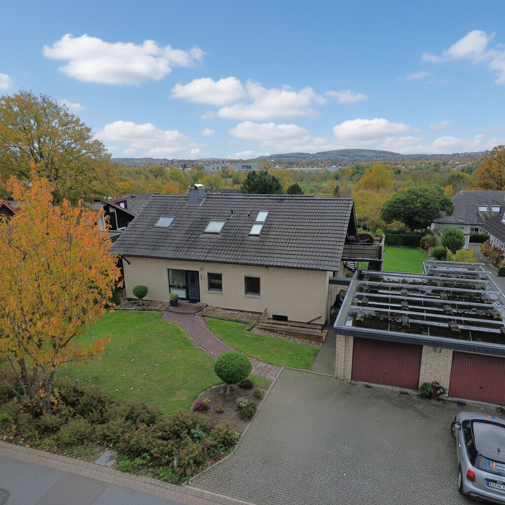 Zu den Ausstattungsmerkmalen zählen unter anderem eine Alarmanlage, Echtholzparkett, eine in den 1990er-Jahren erneuerte Erkerkonstruktion sowie ein modernisierter Fürst des Daches. Auf dem Dach der Doppelgarage befindet sich eine Photovoltaikanlage, die aktuell monatlich rund 250 € Einspeisevergütung generiert. Die großzügige Doppelgarage bietet zwei Stellplätze und weiteren Stauraum.