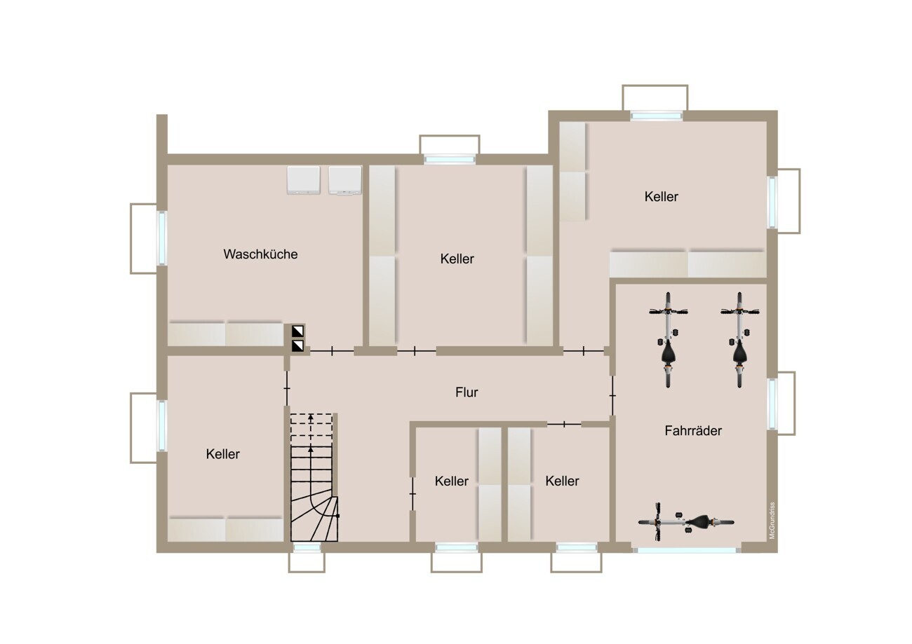 Die Wohnung im Erdgeschoss umfasst ca. 125 m² Wohnfläche und bietet zwei Schlafzimmer, ein Badezimmer, ein Büro, ein großzügiges Wohn- und Esszimmer, eine Küche sowie einen gemütlichen Wintergarten mit Kamin. Von hier aus gelangt man direkt in den gepflegten Garten mit schöner Terrasse – ein idealer Ort zum Entspannen. Über den Wintergarten besteht zudem der Zugang zum voll unterkellerten Bereich, der zusätzliche Nutzfläche und mehrere Räume bietet. Der Keller kann auch über eine Außentreppe erreicht werden.