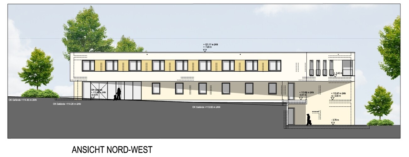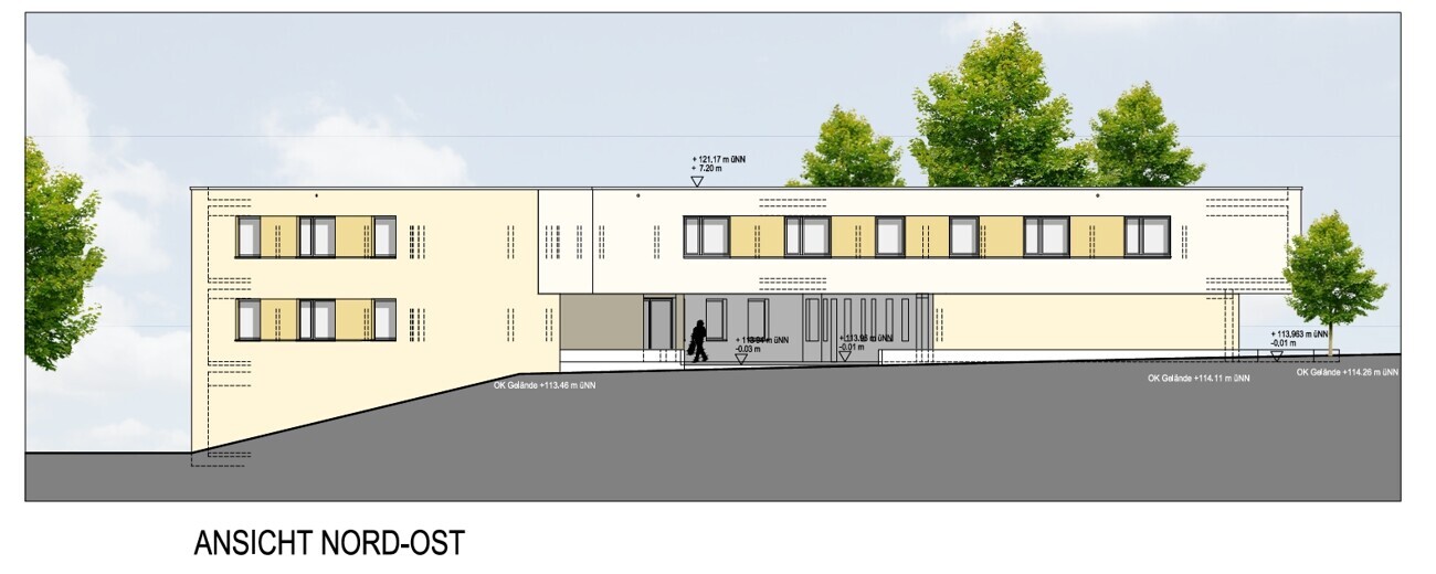Die Praxisfläche selbst lässt sich mit gut nutzbaren Behandlungs- und Büroräumen, freundlichen Wartezonen und Aufenthaltsbereichen sowie zeitgemäßen Sanitäranlagen für Patienten und Team realisieren. Das Gebäude wird vollständig barrierefrei geplant, inklusive Aufzug. Auf dem Grundstück sind zahlreiche Stellplätze für Patienten vorgesehen.