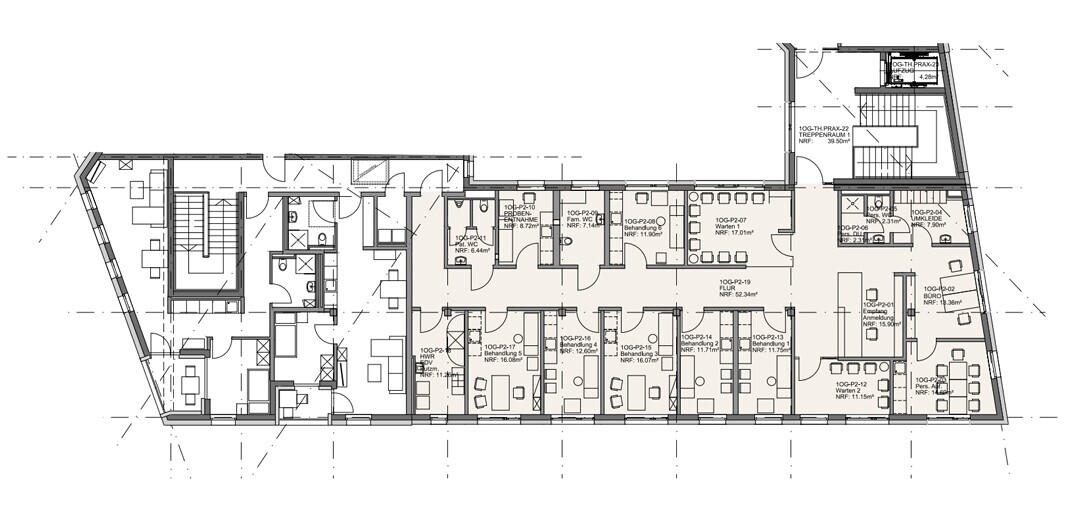 Die Fläche richtet sich insbesondere an Allgemeinmediziner, Fachärzte, Heilpraktiker sowie Anbieter von Heil- und Hilfsmitteln. Sowohl eine Teilanmietung als auch die Einrichtung einer Gemeinschaftspraxis mehrerer Partner sind möglich.