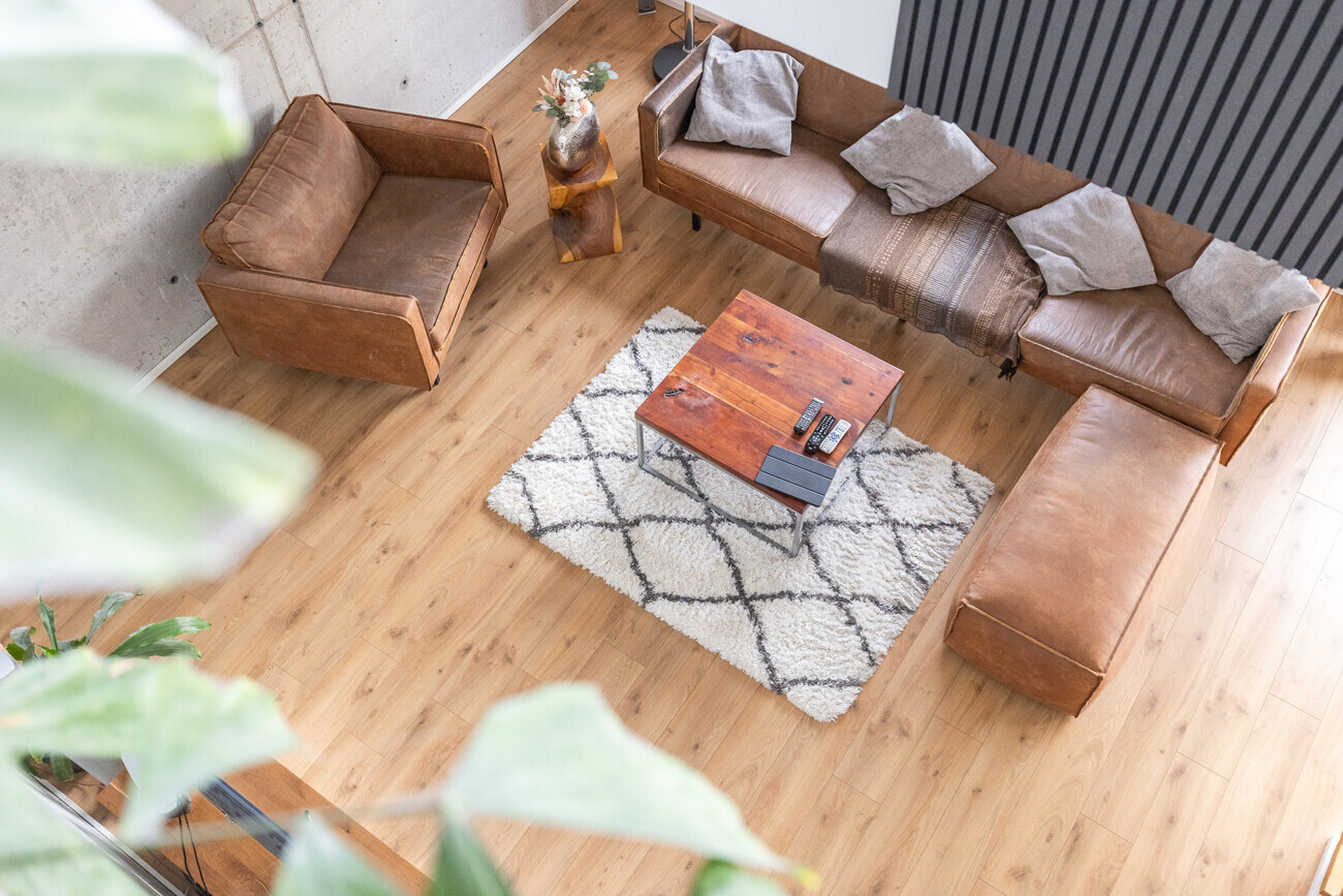 - Sichtbetonflächen und sichtbare Stahlträger – konsequenter, authentischer Industrial-Look