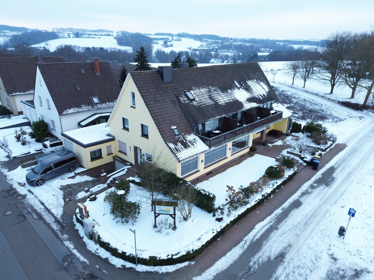 Verkehrstechnisch überzeugt der Standort durch die schnelle Erreichbarkeit der Autobahnen A2 und A30, wodurch eine gute Anbindung in Richtung Bielefeld, Hannover und Osnabrück gegeben ist. Ergänzend sorgt die nahegelegene B61 für eine zügige Verbindung in das Stadtzentrum von Bad Oeynhausen sowie in die umliegenden Ortschaften. Diese Kombination aus ruhiger Lage und guter Erreichbarkeit bietet ideale Voraussetzungen für eine wirtschaftlich tragfähige Nutzung der Gastronomieflächen im Erdgeschoss und der Beherbergungsflächen im Obergeschoss.