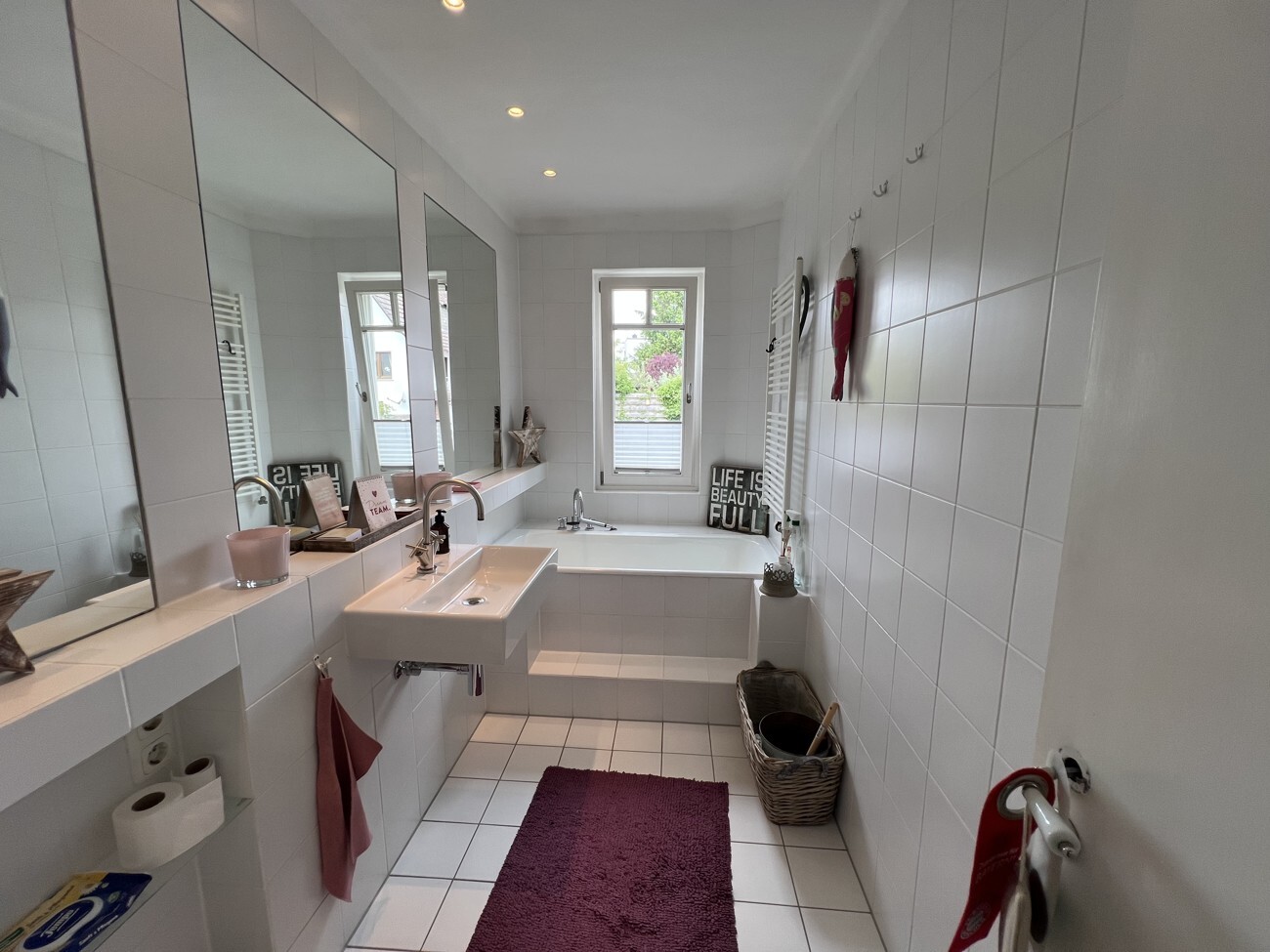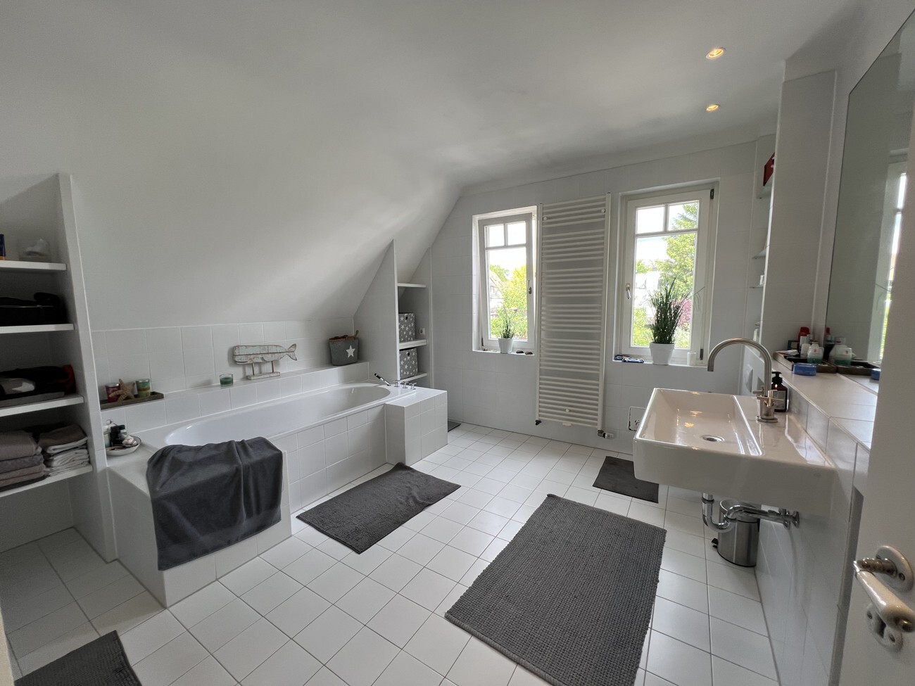 Im Inneren überzeugt die Immobilie mit einem offen gestalteten Wohn, Ess und Küchenbereich, der das Herzstück des Hauses bildet. Hier verschmelzen Kochen, Genießen und Zusammensein auf harmonische Weise. Zwei moderne Badezimmer bieten Komfort für den Familienalltag, ergänzt durch eine praktische Dusche im Keller, ideal nach dem Sport, der Gartenarbeit oder einem Saunagang. Die Bäder wurden im Jahr 2012 erneuert und präsentieren sich gepflegt und zeitgemäß. Ein Kamin sorgt zusätzlich für behagliche Wärme und gemütliche Abende. Die hochwertige Einbauküche fügt sich harmonisch in den offenen Wohnbereich ein und kann zusammen mit der Sauna gegen eine Abstandszahlung in Höhe von insgesamt 25.000 Euro übernommen werden.